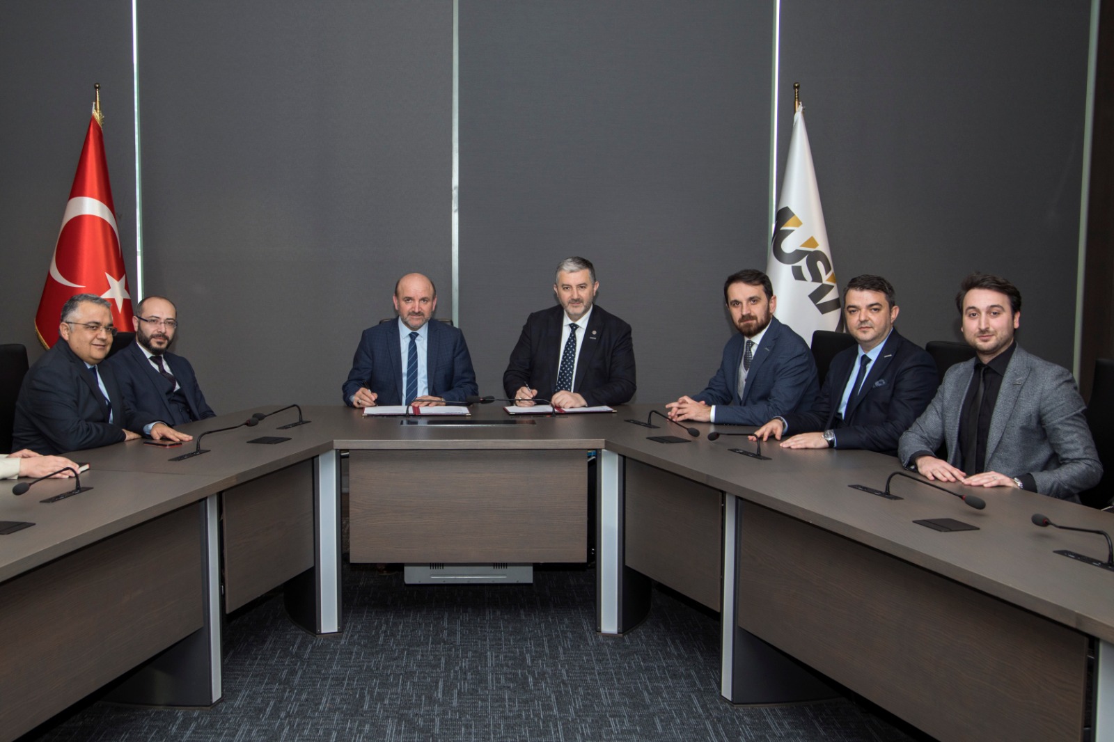 MÜSİAD Genel Başkanı Abdurrahman Kaan, İstanbul Sabahattin Zaim Üniversitesi Rektörü Prof. Dr. Mehmet Bulut ile MÜSİAD Akademi Kamu Sanayi İşbirliği ve Proje Takibi Komite Başkanı Abdulsamet Temel katılımlarıyla düzenlenen imza töreni, MÜSİAD Genel Merkez binasında gerçekleşti.